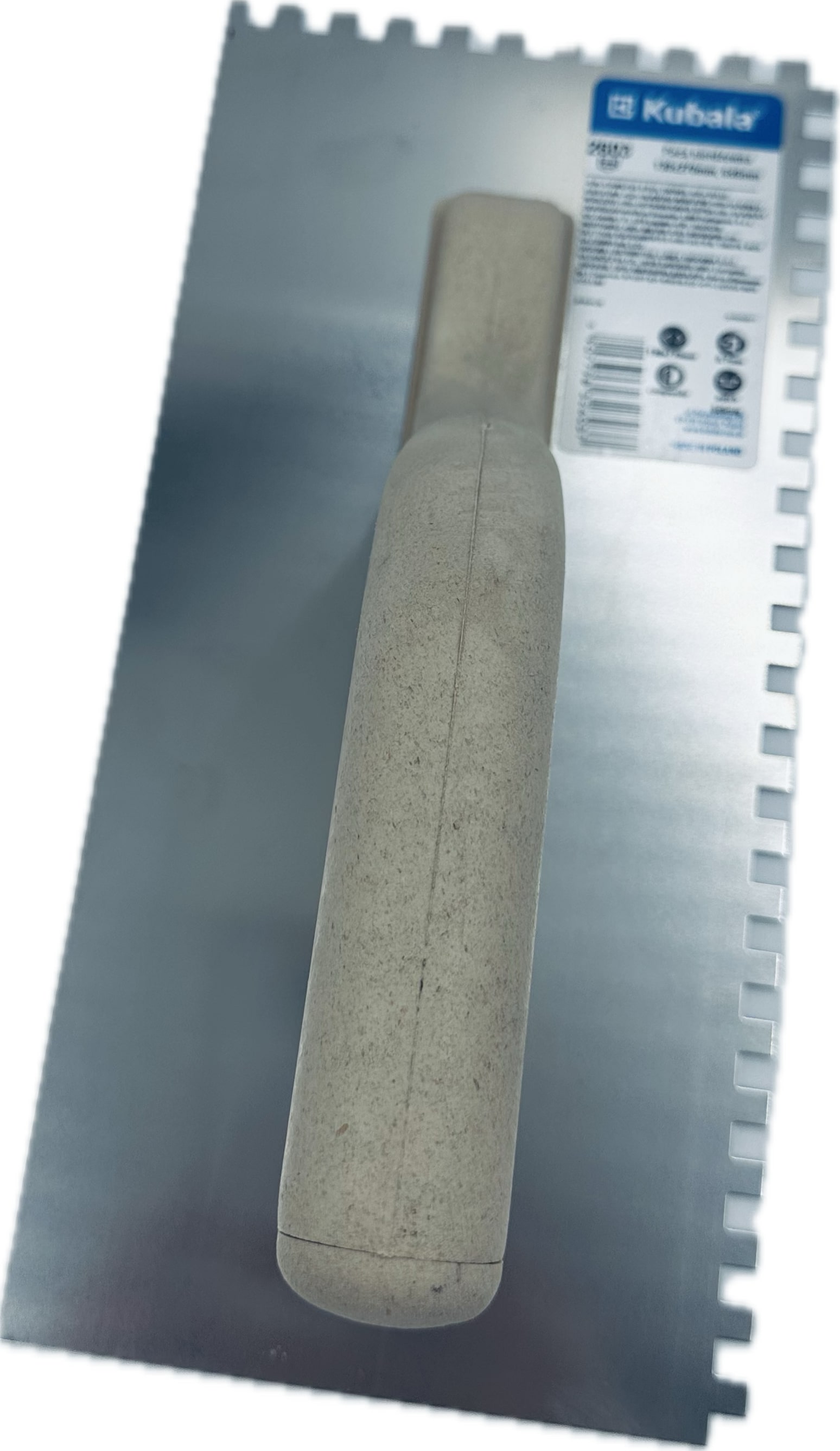 Ergonomisch geformter Kunststoffgriff (PS). Rostfreies Edelstahl-Blatt 0,7mm. Säurebeständig. Zum Auftragen von Kleber und Armiermörtel. 130 x 270mm, gezahnt 12 x 12mm