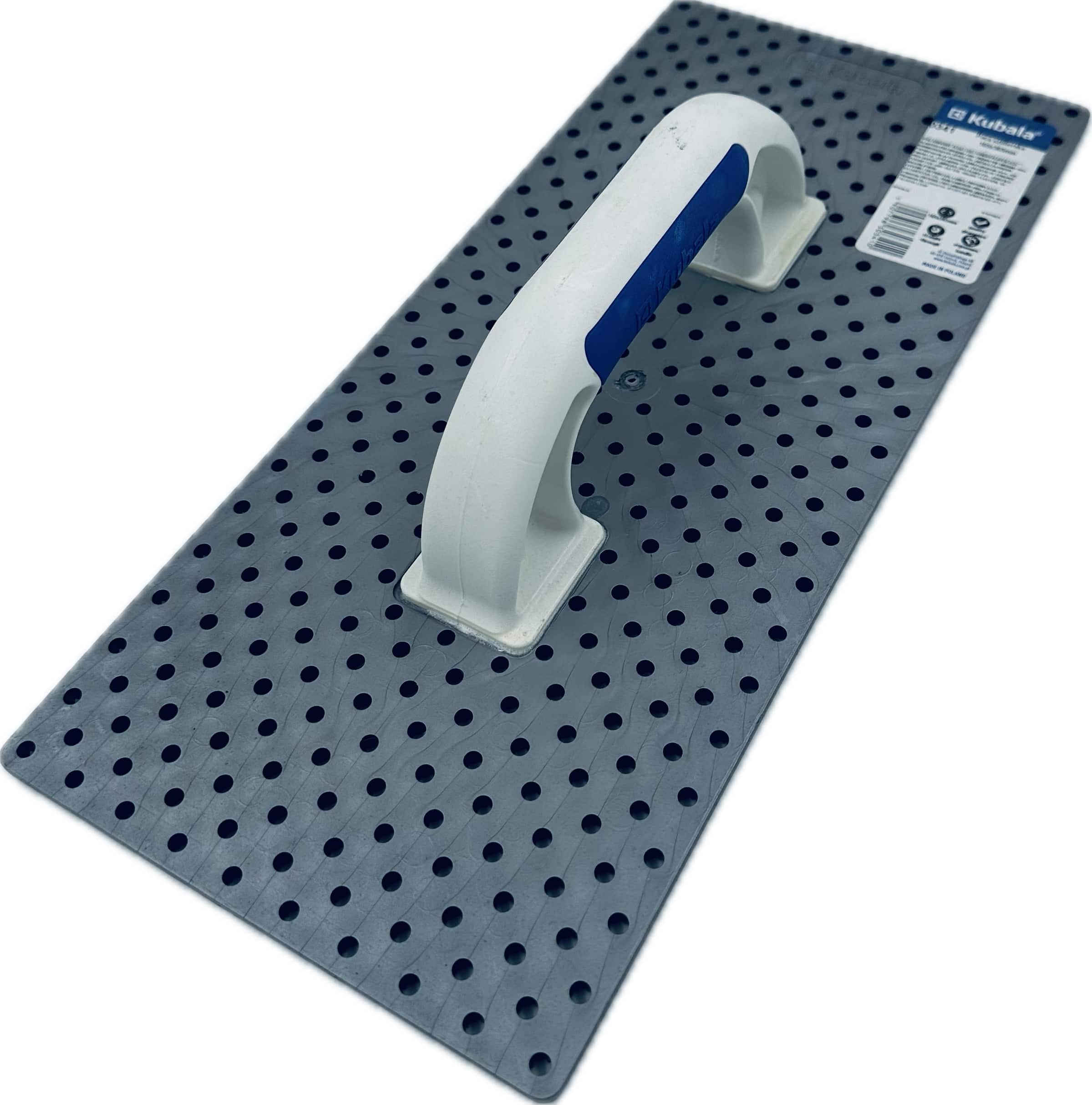 Kunststoffreibebrett (PS). Gelocht. Ergonomisch geformter Handgriff.2-K Griff mit Zinkblechauflage. Schleiflochstruktur zum Planschleifen von Styroporplatten während der Wärmedämmungsarbeiten.130 x 270mm