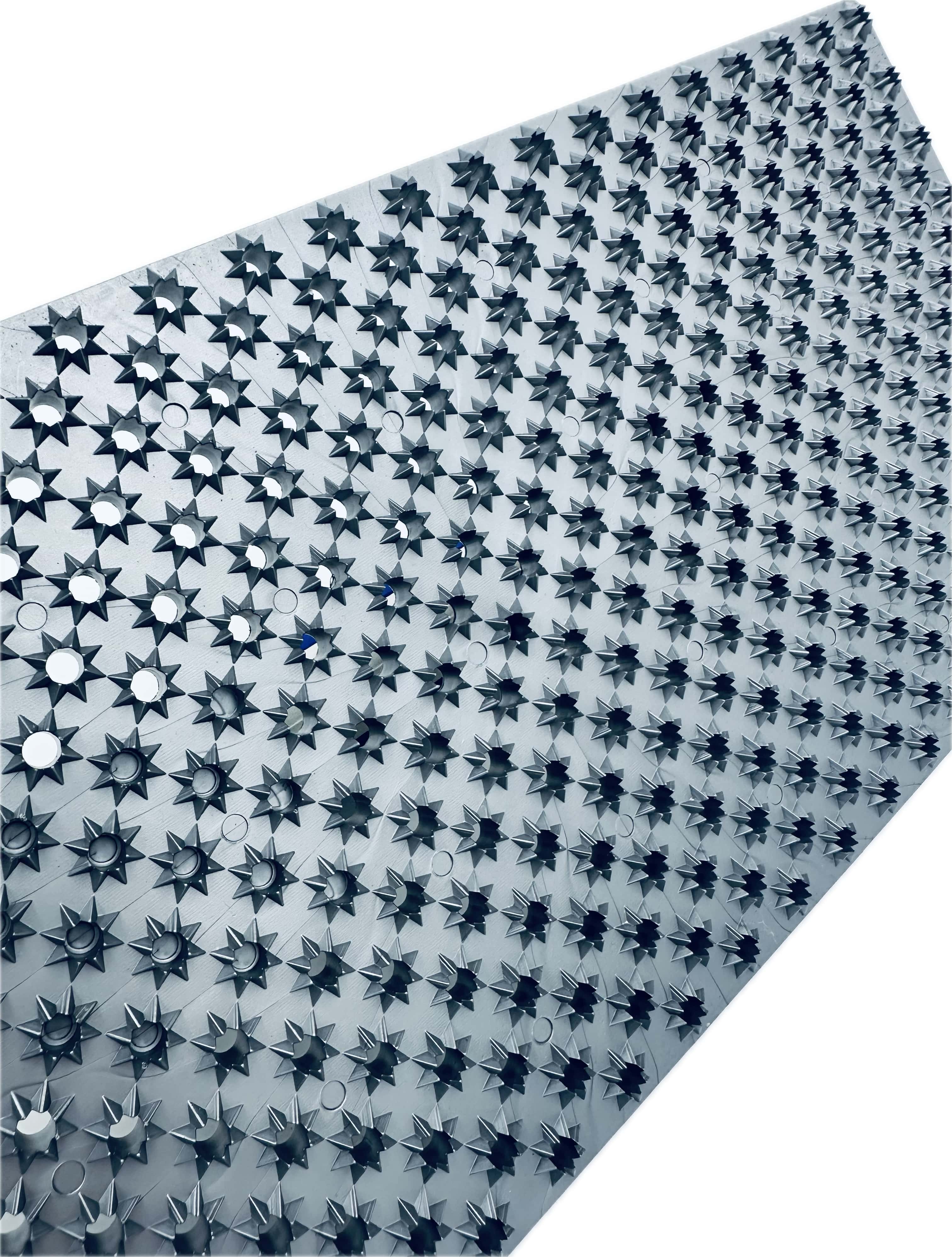 - Mit Schleiflöchern und Schleifkronen besetzt.